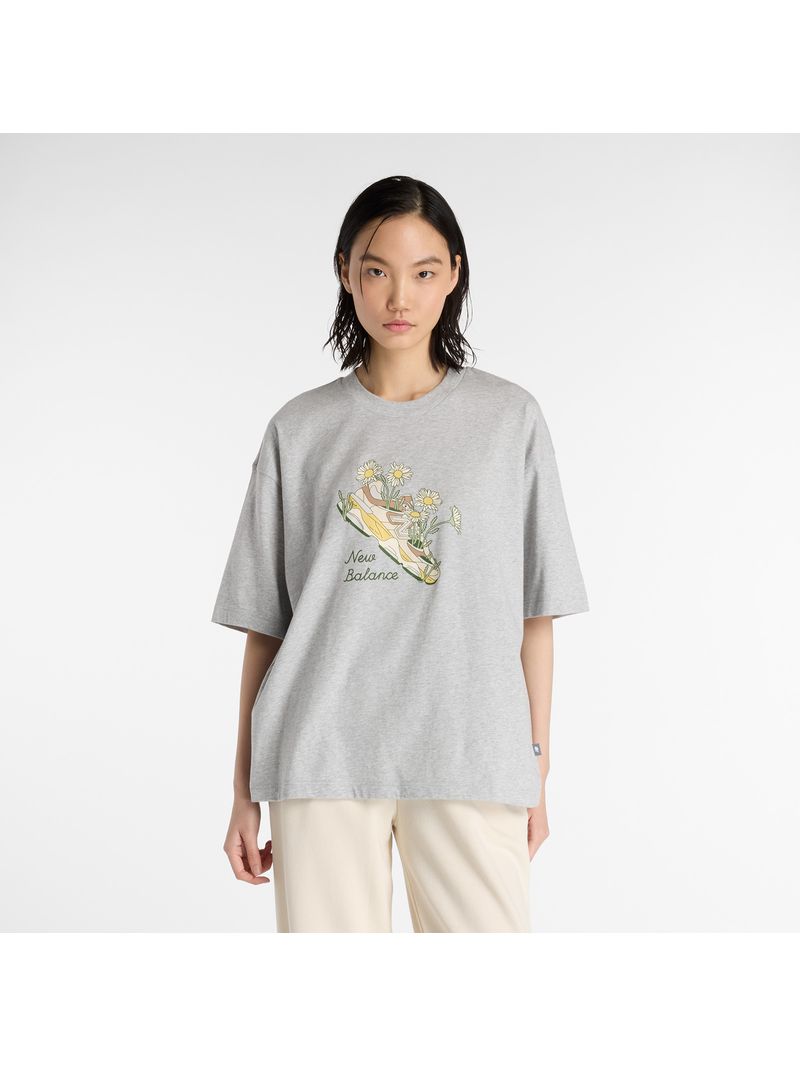 Remera New Balance Mujer Flower Shoe T-Shirt Gris